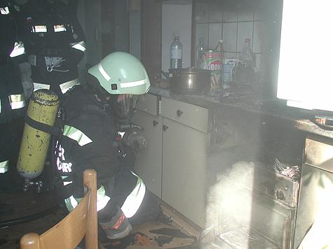 In der Zwischenzeit führte ein weiterer Atemschutztrupp in der betroffenen Küche die Löscharbeiten durch. Bereits nach kurzer Zeit konnte „Brand aus“ gegeben werden. Nach kleineren Nachlöscharbeiten war die Gefahr endgültig gebannt; die Wohnung ist insbesondere durch den Brandrauch vermutlich unbrauchbar geworden.
