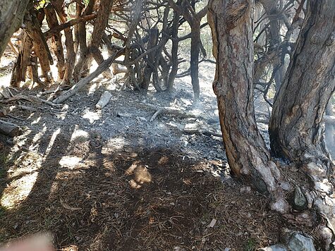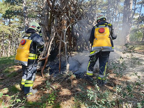 Mit Löschrucksäcken und Schanzwerkzeug konnte umgehend die Brandbekämpfung eingeleitet werden. Einzelne Äste mit erhöhter Temperatur wurden abschließend noch von der Brandstelle zu Tank 4 verbracht, wo sie schlussendlich vollständig abgelöscht werden konnten.