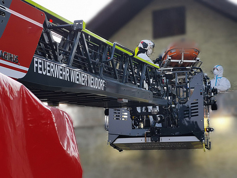 Nach der Erkundung durch den Einsatzleiter und nach Absprache mit dem Rettungsdienst war die eigentliche Rettungsaktion Routine: Der Korb der Wiener Neudorfer Drehleiter verfügt über eine Halterung für Krankentragen – damit konnte der Patient in einer Korbschleiftrage vorsichtig über den Balkon gehoben und in der Nähe des Rettungsfahrzeuges abgesetzt werden.