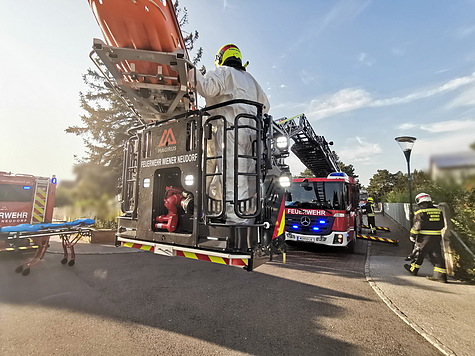 Am Montagnachmittag wurde die Freiwillige Feuerwehr Wiener Neudorf zur Unterstützung des Rettungsdienstes gerufen: Eine Person war im ersten Stock eines Wohnhausesin Wiener Neudorf gestürzt, hatte sich dabei verletzt und musste per Drehleiter über den Balkon gerettet werden.