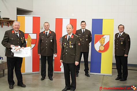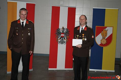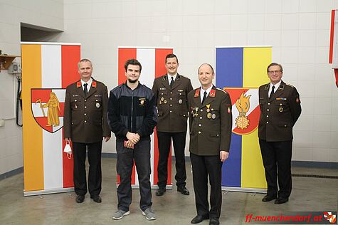Des weiteren wurde Feuerwehrmann Markus Gager zum Dienstgrad Verwaltungsmeister befördert, da er in Zukunft den Verwaltungsdienst in der Feuerwehr Münchendorf als Gehilfe unterstützen wird.