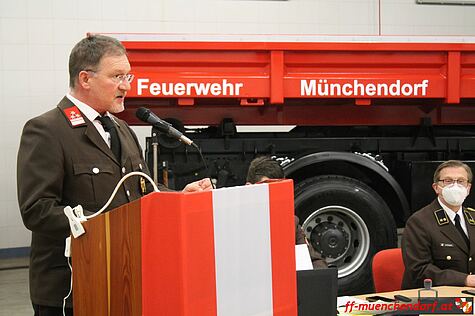 Am Freitag, den 15. Jänner 2021, fand die jährliche Hauptversammlung der Freiwilligen Feuerwehr Münchendorf statt. Auf Grund der Corona-Pandemie wurde diese Versammlung, unter Berücksichtigung besonderer Vorsichtsmaßnahmen, in der Fahrzeughalle des Feuerwehrhauses durchgeführt. Als einer der Tagesordnungspunkte stand die Neuwahl des Feuerwehrkommandanten und des Feuerwehrkommandanten-Stellvertreters auf dem Programm.