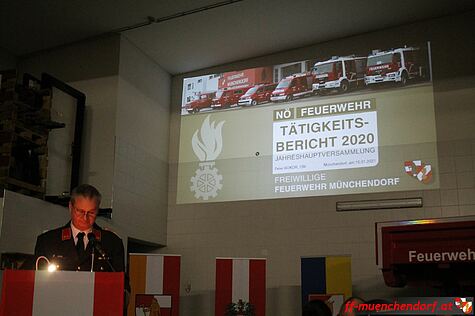 Zu Beginn der Jahreshauptversammlung legte das Feuerwehrkommando eine Berichterstattung des abgelaufenen Jahres ab, welches maßgeblich von dem Ausbruch der Corona-Pandemie gezeichnet war. Traditionell präsentierte Kommandant Franz Winkler einen Foto-Jahresbericht über die Geschehnisse in der Feuerwehr Münchendorf im abgelaufenen Jahr. Im Anschluss daran brachte Kommandant-Stellvertreter Peter Bokor den Tätigkeitsbericht über die Einsätze, Übungen sowie Ausbildungstätigkeiten dar.