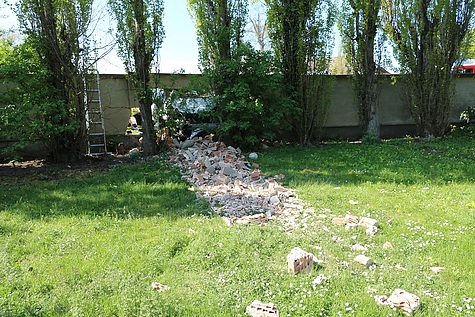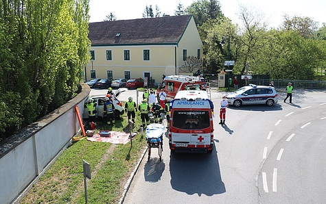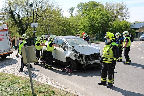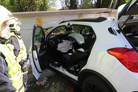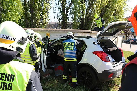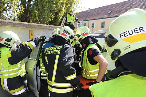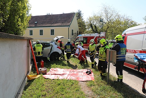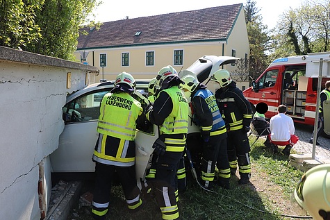 Unter Vornahme des hydraulischen Rettungsgerätes wurde eine Türe und die B-Säule entfernt, um so den verletzten Lenker mittels Spineboard schonend aus dem Fahrzeug befreien zu können Im Anschluss an die Personenrettung wurde der Pkw mittels Seilwinde vom Hilfeleistungslöschfahrzeug zurück auf die Fahrbahn gezogen und bei der Polizeiinspektion Laxenburg sichergestellt Die starkbeschädigte Klostermauer wurde von der Feuerwehr provisorisch gepölzt und der Bereich abgesperrt.