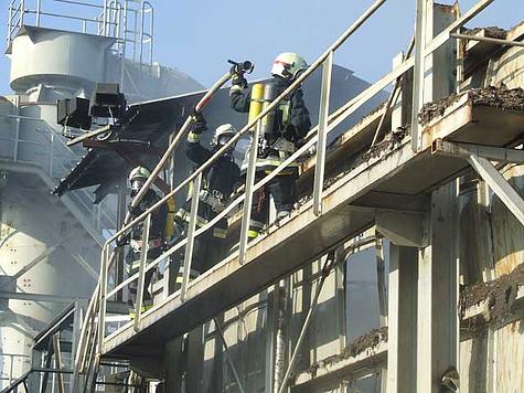 Der Brand wurde von drei handgeführten C-Rohren unter Kontrolle gebracht und schließlich gegen 16 Uhr abgelöscht. Die Brandbekämpfung musste wegen der Rauchentwicklung unter Atemschutz durchgeführt werden. Im Anschluss der Löscharbeiten wurde noch mit einem Schwerschaumrohr ein Schaumteppich über den abgebrannten Bereich aufgetragen.