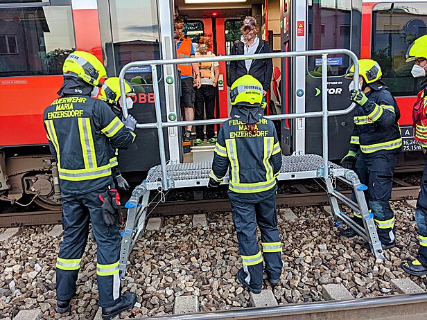 Feuerwehr Maria Enzersdorf rettet fünf unverletzte Personen aus Zuggarnitur