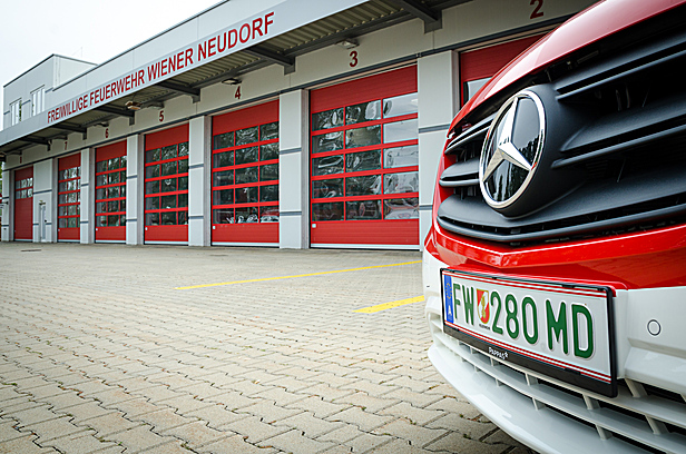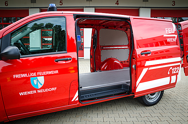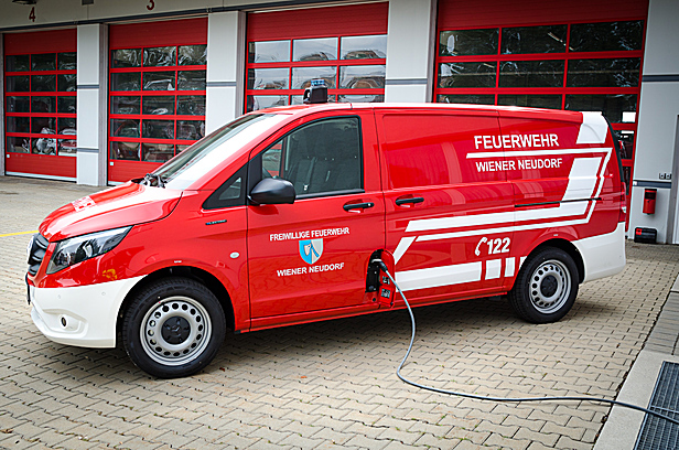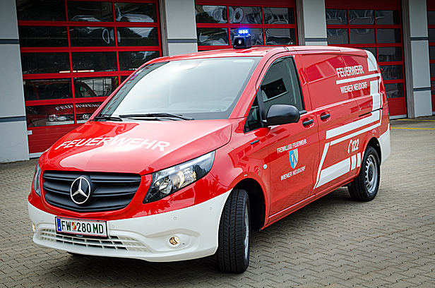 Nach Evaluierung des Marktes fiel die Entscheidung auf einen 100% elektrisch angetriebenen eVito der Marke Mercedes Benz. Der Transporter verfügt über einen Elektromotor mit einer maximalen Leistung von 85 kW (116 PS). Im Interview verrät der Fahrmeister der Freiwilligen Feuerwehr Wiener Neudorf Wolfgang Stift: „Die nutzbare Batteriekapazität beträgt 35 kWh und kann innerhalb von sechs Stunden voll aufgeladen werden. Die Reichweite des Fahrzeuges liegt bei bis zu 150 Kilometern und reicht somit vollständig aus, um unser Einsatzgebiet zu betreuen oder Besorgungsfahrten in Wien und Niederösterreich zu erledigen“.