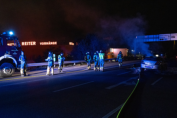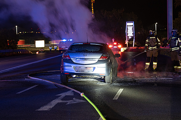 In den Abendstunden wurde die Freiwillige Feuerwehr Vösendorf zu einem Fahrzeugbrand auf der SCS-Brücke alarmiert. Da sich ein Teil der Mannschaft zum Zeitpunkt der Alarmierung im Feuerwehrhaus aufhielt, rückten bereits nach wenigen Minuten drei Fahrzeuge zum Einsatzort aus. Ein Kleinwagen hatte während der Fahrt aus ungeklärter Ursache plötzlich zu brennen begonnen und kam mitten auf der SCS-Brücke zum stehen.