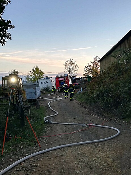 Die Kameraden der FF Dornbach sind um 17:00 Uhr bei der Übungsadresse eigetroffen und begannen mit dem Aufbau einer Löschleitung zum Schützen des Waldes über ihr Hilfeleistungslöschfahrzeug. Nach Eintreffen, stellte die FF Sulz sofort eine Zubringleitung vom Teich des Betriebes zum „Tank Dornbach“ her. Die FF Grub legte eine Löschleitung und begann mit der Brandbekämpfung der Scheune.