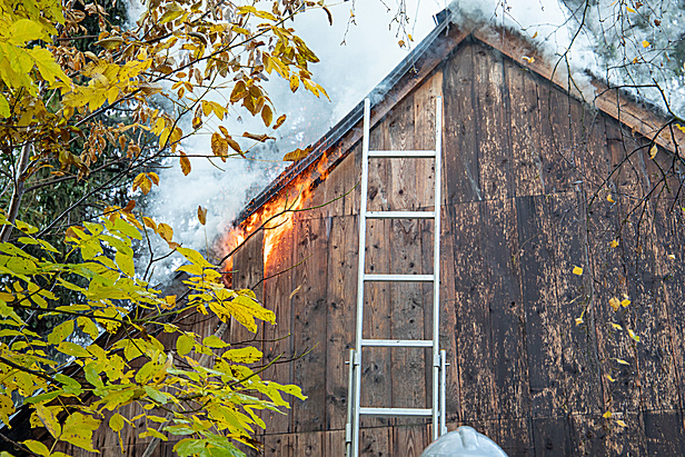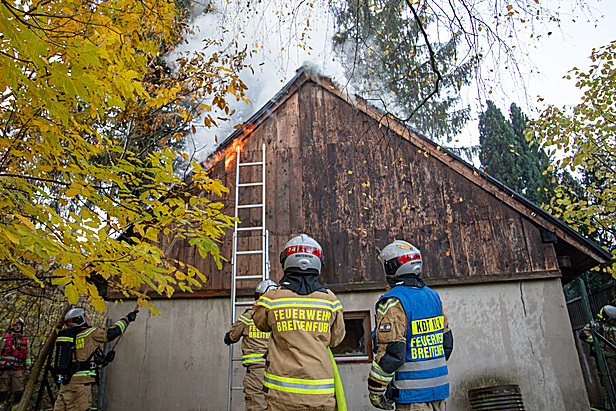 Im Zuge der Erkundung konnte ein ungefähr 50 Quadratmeter großer Schuppen, der als Werkstatt genutzt wird, in Vollbrand vorgefunden werden. Wegen der hohen Brandintensität begannen auch bereits umliegenden Bäume zu brennen. Glücklicherweise befand sich zum Zeitpunkt des Brandausbruches niemand im Gebäude.