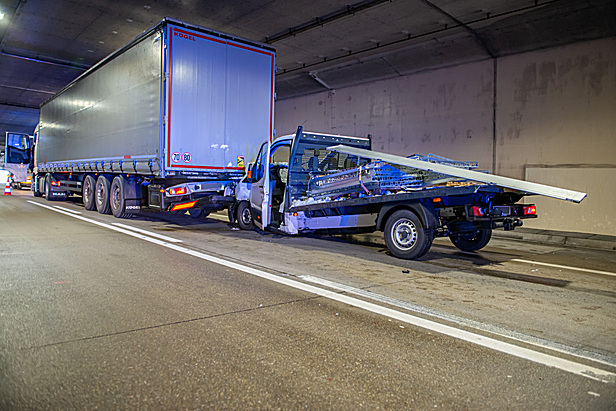 Nachdem die beteiligten Fahrzeuge voneinander getrennt wurden, konnten die Sattelzüge die Fahrt selbstständig fortsetzen, die beiden Klein-LKW wurden aus dem Tunnel geschleppt und gesichert abgestellt.