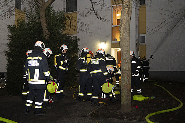 Sofort machten sich drei Atemschutztrupps der Feuerwehr auf die Suche nach der Brandwohnung. Da das betroffene Fenster genau zwischen zwei Stiegenhäusern lag wurden beide Stiegenhäuser durchsucht. Dabei setzte die Feuerwehr die Evakuierung der Bewohner aus den umliegenden Wohnungen fort.