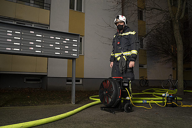 Nachdem der Brand gelöscht werden konnte, wurde ein elektrischer Lüfter eingesetzt, um das Stiegenhaus rauchfrei zu machen. In der Zwischenzeit konnten die Bewohner der Stiege zwölf wieder in ihre Wohnungen zurück.