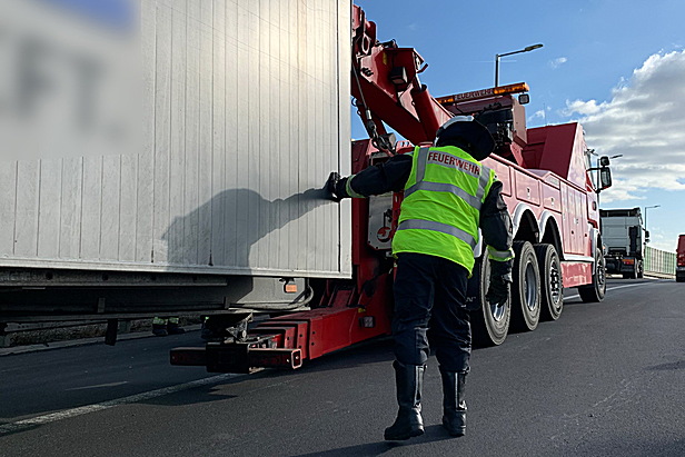 Der Hänger hatte sich vom Sattelzugfahrzeug gelöst und auf der Autobahnrampe eingebremst. Vorort wurde durch den Einsatzleiter festgestellt, dass für die Bergung ein spezielles LKW Abschleppfahrzeug der Berufsfeuerwehr Wien angefordert werden musste. Mithilfe des Sonderfahrzeuges wurde der Sattelauflieger von der Autobahn geschleppt und gesichert abgestellt.