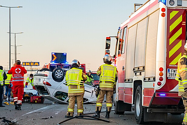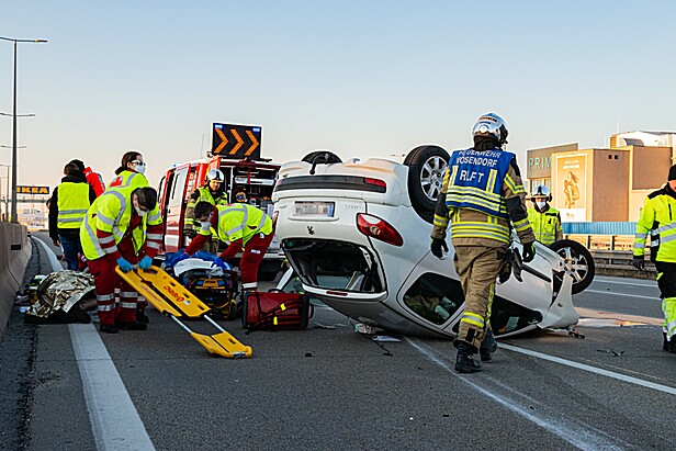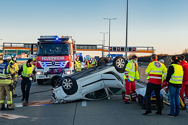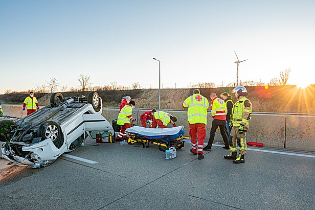 Auf Höhe der SCS hatte sich ein PKW nach Kollision mit der Betonleitwand überschlagen und kam auf der dritten Fahrspur zum Liegen. Ein zufällig in die Gegenrichtung fahrender Sanitäter der Wiener Berufsrettung leistete Erste Hilfe und setze die Rettungskette in Gang.