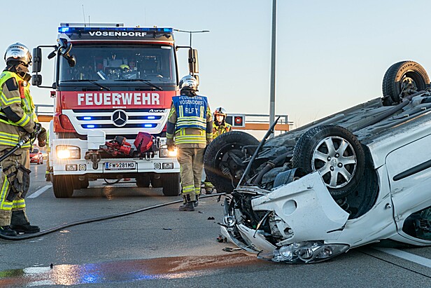 Beim Eintreffen der Feuerwehr Vösendorf war der verletzte Lenker bereits aus dem Wrack befreit und wurde durch den Rettungsdienst notfallmedizinisch versorgt.