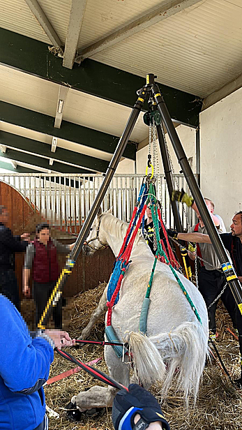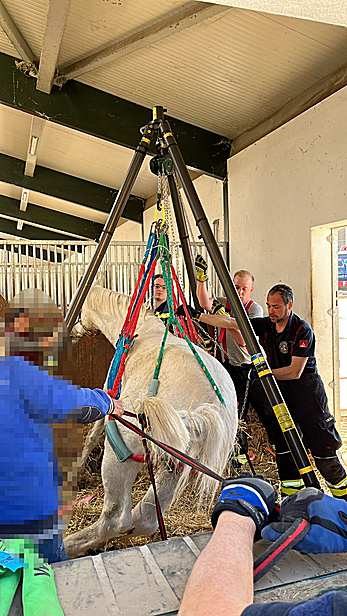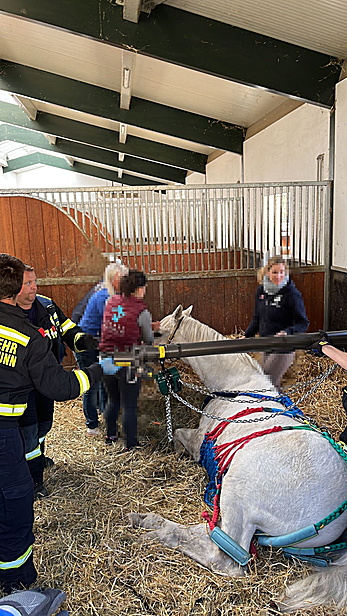 Am Vormittag des 14. April wurde die Freiwillige Feuerwehr Laxenburg zu einer Tierrettung in den Reitstall Laxenburg alarmiert. Ein Pferdebesitzer versuchte vergeblich sein Pferd in dessen Box wieder auf die Beine zu stellen. Die Freiwillige Feuerwehr Laxenburg wurde darauf zur Assistenzleistung angefordert. Da ein schonendes Anheben des Pferdes mit den vorhandenen Mitteln nicht möglich war, wurde die Freiwillige Feuerwehr Kottingbrunn (Bezirk Baden) angefordert. Diese verfügt über ein spezielles Gerät zum Heben von Pferden auf beengtem Raum. Mit Hilfe eines Dreibeins und des Pferdegeschirrs konnte das Tier wieder auf die Beine gestellt werden. Eine anwesende Tierärztin sedierte das Pferd und begleitete die Rettungsaktion.