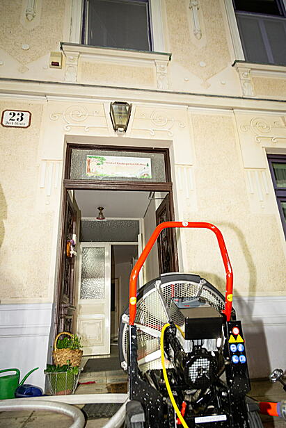 Durch den Atemschutztrupp des ersteintreffenden Hilfeleistungsfahrzeuges (Tank1) wurde umgehend eine Löschleitung im Innenangriff vorgenommen. Das zweite Hilfeleistungsfahrzeug (Tank2) stellte einen Reservetrupp und baute eine Überdruckbelüftung auf. Durch einen dritten Atemschutztrupp wurde eine Anleiterbereitschaft (Leiter am Fenster als Fluchtmöglichkeit) eingerichtet.