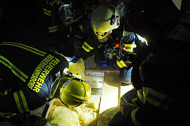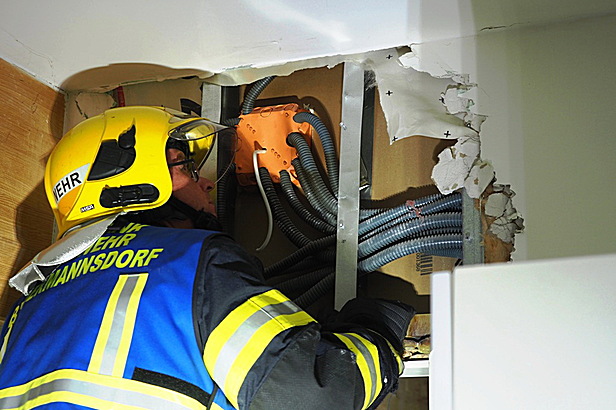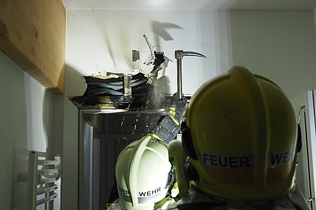 Die Feuerwehr Biedermannsdorf kontrollierte den betroffenen Bereich mit der Wärmebildkamera. Dabei wurden mehrere starke Wärmequellen in der Wand und in der Decke festgestellt.