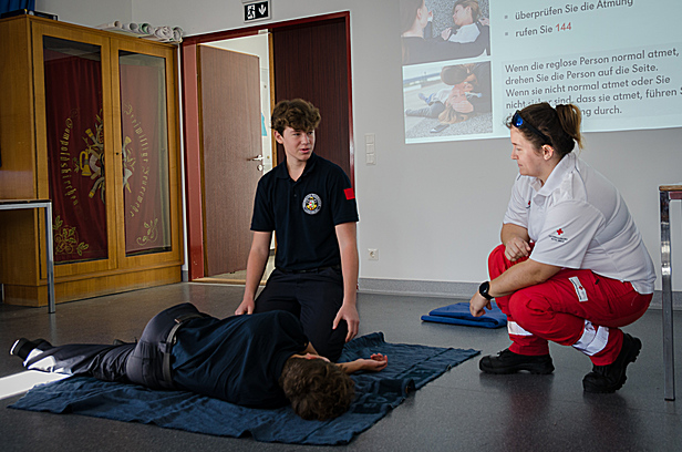 Im Zuge der mehrstündigen Ausbildung wurden die wichtigsten Handgriffe und Vorgehensweisen aus den üblichen Erste-Hilfe-Kursen wiederholt und anschließend praktisch trainiert.