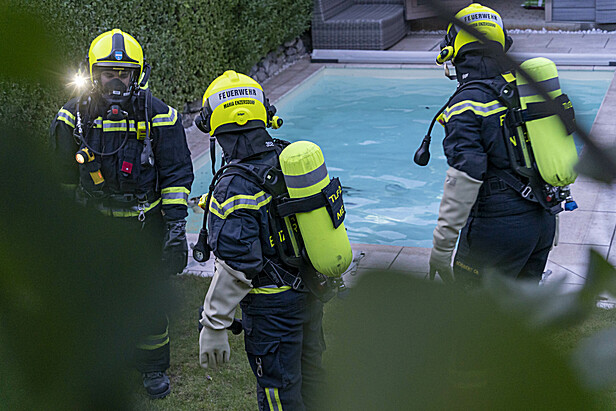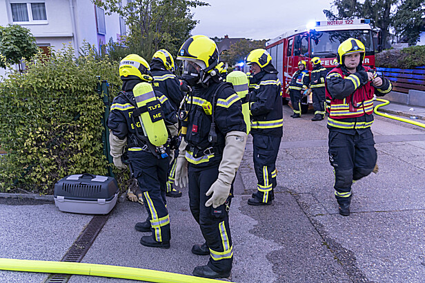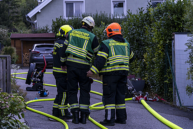 Die Einsatzkräfte der Feuerwehr wurden mit dem Alarmstichwort „Kellerbrand“ alarmiert, bemerkten jedoch beim Eintreffen einen beißenden Geruch. Außerdem war der Rauch, der aus dem Keller drang, nicht schwarz, wie es bei Bränden normalerweise der Fall ist, sondern weiß. Die Bewohner meldeten, dass ihre Katze noch im Haus sein dürfte. Unter Atemschutz machte sich der erste Trupp mit einer Löschleitung zur Erkundung auf den Weg in den Keller. Nachdem dort kein Brand feststellbar war, begannen sie mit der Suche nach der abgängigen Katze. Plötzlich schlug das Mehrgasmessgerät Alarm und zeigte eine erhöhte Konzentration an Chlor (2,2 ppm). Daraufhin wurde der Schadstoffberatungsdienst angefordert. Am Rückweg stellte der Atemschutztrupp einen Entstehungsbrand im Heizraum fest, konnte diesen aber rasch bekämpfen. Im Heizraum wurden zwei Kübel mit Chlorgranulat für Swimmingpools gefunden und ins Freie gebracht. Aufgrund eines Defekts der Heizung dürfte Wasserdampf ausgetreten sein, der mit dem Granulat reagierte und den Chlorgeruch freisetzte. Die chemische Reaktion könnte auch zur Erwärmung des Kübels und der anschließenden Entzündung geführt haben.
