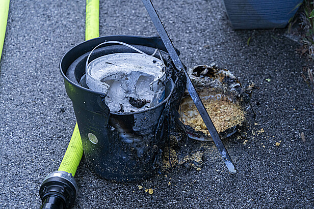 Der bereits eingetroffene Schadstoffberatungsdienst nahm nach der Lageerkundung erste Messungen vor und konnte im Haus eine leichte Chlorkonzentration zwischen 0,0 und 0,5 ppm nachweisen. Die Kübel mit dem Chlorgranulat wurden unter Atemschutz und mit Chemieschutzhandschuhen in den Pool im Garten verbracht, wo sie nun mindestens drei Tage belassen werden sollen, um das Chlor so gut wie möglich zu verdünnen. Das Löschwasser im Keller wurde ebenfalls auf Chlorgehalt kontrolliert, jedoch ergab die Messung 0,0 ppm, weshalb das Wasser mittels Nass-Trocken-Sauger aus dem Keller gepumpt werden konnte.