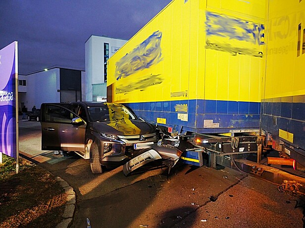 Am späten Nachmittag des 13. Februar 2023 wurden die Feuerwehren Biedermannsdorf und Laxenburg zu einem Verkehrsunfall mit einer eingeklemmten Person in das Industriezentrum Niederösterreich Süd alarmiert. Ein Pkw war aus unbekannter Ursache mit einem LKW-Anhänger zusammengestoßen und hatte sich mit diesem verkeilt.