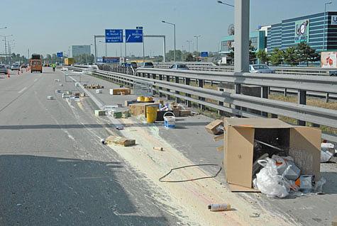 Jedoch ging von der Ladung des LKW's, die über den Pannestreifen verteilt war, erhöhte Brandgefahr aus. Ein Teil der Ladung bestand aus mit Nitro-Verdünnung gefüllten, Fässern welche durch den Aufprall stark deformiert waren. Nach der Sicherung der Fässer wurde das Kranfahrzeug der Feuerwehr Mödling alarmiert um den LKW zu bergen. Die Reinigung der Fahrbahn wurde von der ASFINAG übernommen.