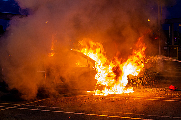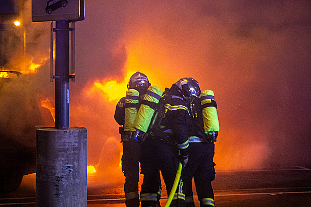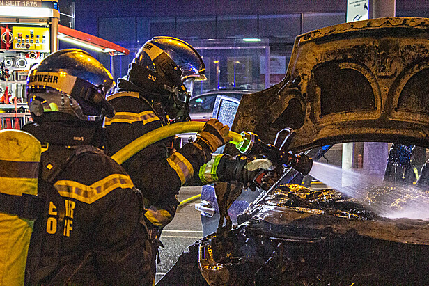 Erste Löschversuche durch Ersthelfer mit Feuerlöschern blieben aufgrund der Brandintensität erfolglos. Der Löschangriff durch die Feuerwehr erfolgte unter umluftunabhängigem Atemschutz mit einer Löschleitung.