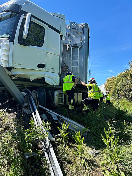 Aus unbekannter Ursache war das Schwerfahrzeug von der Fahrbahn abgekommen, touchierte die Leitschiene und drohte umzustürzen. Das Fahrzeug war mit 7 Tonnen Holz beladen, wobei es durch den Zusammenstoß mit der Leitschiene zu einem Dieselaustritt kam. Der Fahrer blieb dabei glücklicherweise unverletzt.