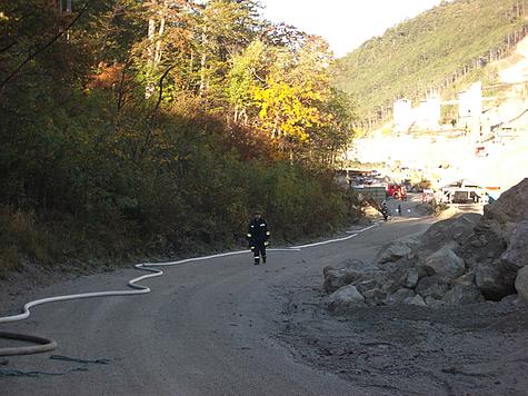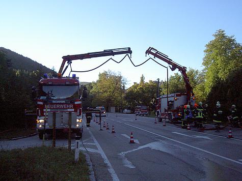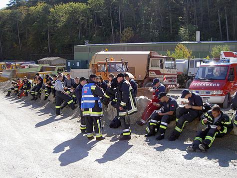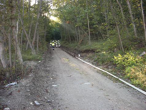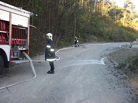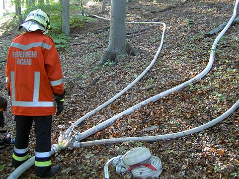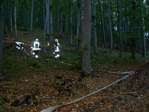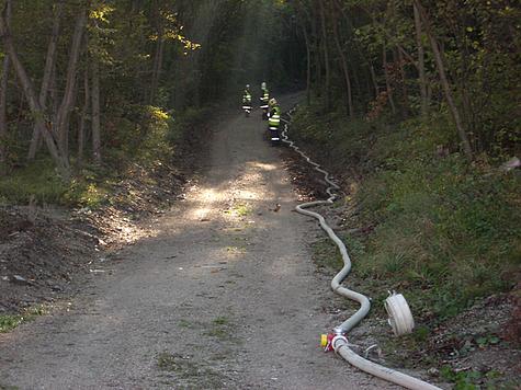 Der 1. Zug war mittels Pendelverkehr für die Wasserversorgung von der B11 zum Werkstättengebäude am Steinbruch, sowie der zweite und dritte Zug für die Relaiseleitung auf den Anninger zuständig. Innerhalb einer halben Stunde war die komplette Löschleitung von ca 1,7 km aufgebaut und der Löschangriff konnte mit 6 C-Rohren beginnen.
