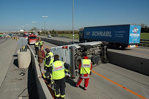Kurz nach Mittag wurde die Feuerwehr Wiener Neudorf am Montag den 15.Oktober 2007 auf die A 2 Richtung Süden alarmiert. Ein Transporter hatte sich im Baustellenbereich bei Baukilometer 15 quer über beide Fahrstreifen gelegt.