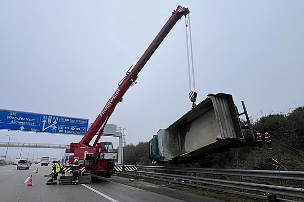 Nach der Erstversorgung des Verletzten wurde die Bergung des verunfallten Fahrzeugs in Abstimmung mit dem zuständigen Autobahnmeister der ASFINAG geplant. Aufgrund auslaufender Betriebsmittel sowie der komplizierten Lage des LKW wurde entschieden, die Bergung mit Unterstützung des Kranfahrzeugs des Niederösterreichischen Landesfeuerwehrverbandes (stationiert bei der Feuerwehr Mödling) sowie eines privaten Abschleppunternehmens durchzuführen.