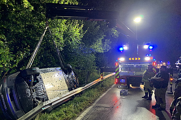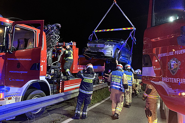Die verunfallte Person wurde in weiterer Folge vom Rettungsdienst versorgt. Der Pkw, ein Elektrofahrzeug, wurde mittels Ladekran des schweren Rüstfahrzeugs Breitenfurt geborgen. Der Abtransport des Unfallfahrzeuges erfolgte mit dem Wechsellladerfahrzeug der Feuerwehr Perchtoldsdorf.
