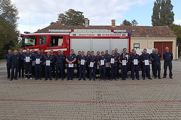 Bei der abschließenden Erfolgskontrolle zeigten alle Teilnehmerinnen und Teilnehmer ihr erlerntes Wissen und schlossen das Modul erfolgreich ab. Die Urkundenübergabe erfolgte durch Bezirksfeuerwehrkommandant-Stellvertreter BR Christian Giwiser, der den Teilnehmenden herzlich zur bestandenen Ausbildung gratulierte.