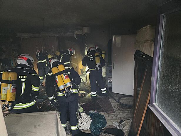 Zeitgleich konnte ein Belüftungsgerät beim Kellereingang in Position gebracht werden, um den Brandrauch über ein geöffnetes Kellerfenster zu verdrängen. Ein zweiter Atemschutztrupp begann in dem Brandraum den brennenden Unrat zu zerteilen, um bessere Nachlöscharbeiten durchführen zu können. Der dritte Atemschutztrupp kontrollierte parallel das restliche verrauchte Gebäude auf Personen und schuf Abluftöffnungen für den Rauch.
