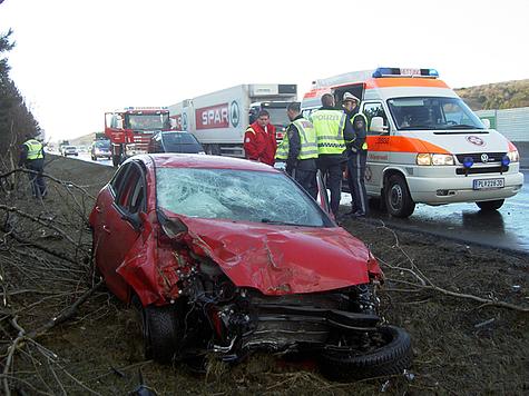 Am Mittwoch den 06. Februar 2008 kam eine Frau mit Pkw von der Fahrbahn der Autobahn A21 ab. Kurz nach der Ausfahrt Hinterbrühl geriet sie in das Fahrbahnbankett und verlor die Kontrolle über den Wagen. Der Pkw rammte mehrere Bäume und kam erst dann zum Stehen.