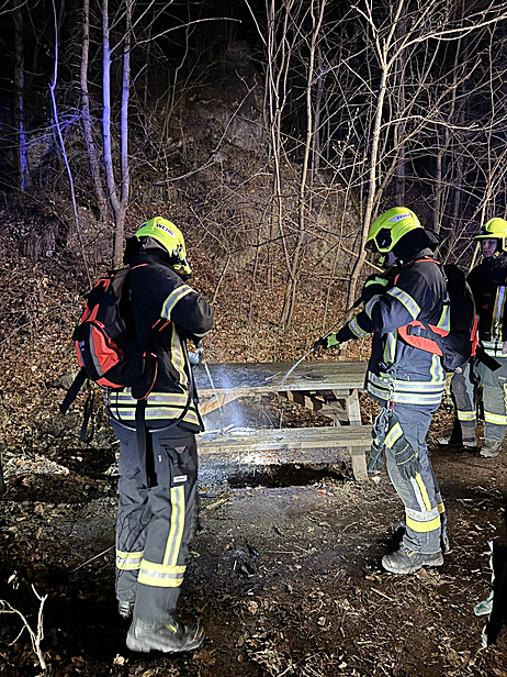 Am Samstag, den 21. März wurde die Freiwillige Feuerwehr Kaltenleutgeben von der Bereichsalarmzentrale Mödling in den späten Abendstunden zu einem B1 Kleinbrand mittels Sirene alarmiert. Ein Tisch mit Sitzbank war aus unbekannter Ursache in Brand geraten. Die Mitglieder der FF Kaltenleutgeben löschten den Brand mittels Löschrucksack und Schnellangriff. Anschließend wurde eine Nachkontrolle mit der Wärmebildkamera durchgeführt und die Einsatzstelle an die ebenfalls alarmiert Polizei übergeben.