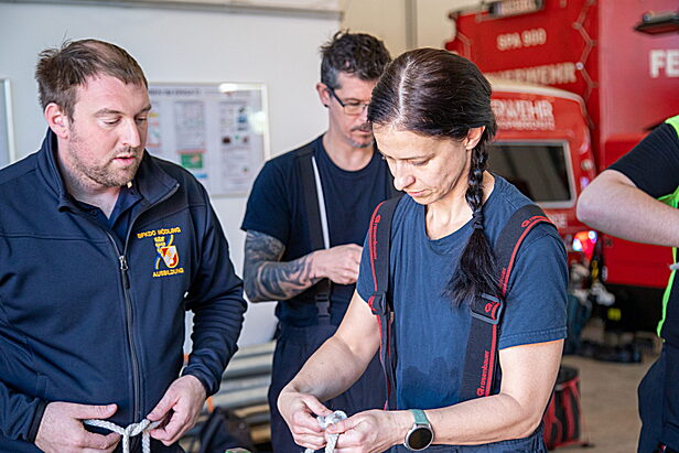 Im Rahmen mehrerer Praxisstationen wurden unter anderem eine Hindernisbahn, Türcheck, Strahlrohrtraining, das Besteigen von Leitern mit gleichzeitigem Aufziehen von Leitungen, Suchtechniken sowie das richtige Überwinden von Hindernissen trainiert. Weitere Schwerpunkte bildeten das Vorgehen bei einem Atemschutznotfall sowie Hygienemaßnahmen im Einsatz.