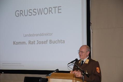 Im Anschluss an die Tätigkeitsberichte der Sachgebiete richtete Landesfeuerwehrkommandant LBD Josef Buchta ergreifende Worte an den Bezirksfeuerwehrtag. Er lobte die hervoragende Arbeit der Feuerwehren des Bezirkes Mödling und forderte sie gleichzeitig auf die Zukunft der Feuerwehr mit ihm zu gestalten.