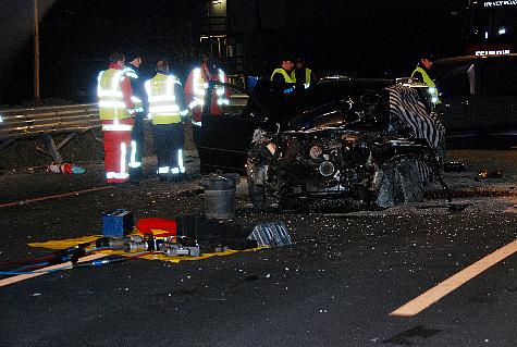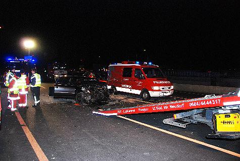 Im Baustellenbereich der A2 in Fahrtrichtung Graz ereignete sich ein dramatischer Verkehrsunfall. Eine Spanische Urlauberfamilie verlor aus derzeit unbekannter Ursache die Herrschaft über deren Fahrzeug. Zuerst touchierte das Fahrzeug die Betonleitwand, danach die Leitplanke und kam anschließend zwischen ersten und zweiten Fahrtstreifen zum Stillstand. Die Feuerwehr Wiener Neudorf rückte unverzüglich nach der Alarmierung durch Florian Mödling zur Unfallstelle aus. Bei der Ankunft am Einsatzort kämpfte bereits das Rote Kreuz um die insgesamt vier verletzten Personen. Unverzüglich wurde das hydraulische Rettungsgerät vom Vorausfahrzeug der Freiwilligen Feuerwehr Wiener Neudorf in Stellung gebracht. Leider vergebens. Der anwesende Notarzt konnte nur mehr den Tod des Unfalllenkers feststellen. Ein Schwer- und zwei Leichtverletzte Personen wurden ins das Krankenhaus Mödling gebracht. Ein tragisches Ende einer Urlaubsfahrt wobei die Familie ihren Vater verlor. Nachdem die Unfallstelle auf eine weitere Person ergebnislos abgesucht wurde, wurde das verunfallte Fahrzeuge mit dem LAST Wiener Neudorf von der Autobahn verbracht. Die A2 war während des Einsatzes gesperrt. Gegen sechs Uhr konnten die 21 Mann und 6 Fahrzeuge unter der Einsatzleitung von HBI Günter Stift wieder einrücken.Bildautor: Herbert Wimmer/Pressestelle BFK Mödling