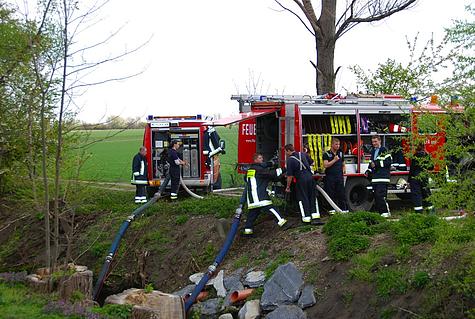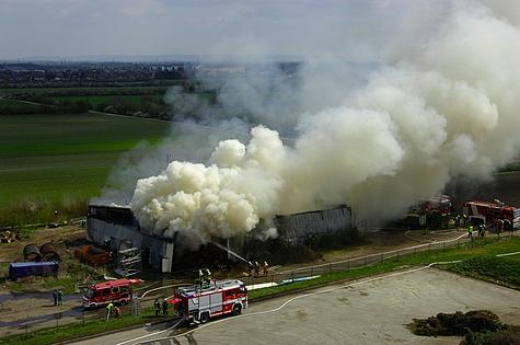 Kurz darauf wird zur Verstärkung die Feuerwehr Mödling gerufen. In weiterer Folge auf Grund der schwierigen Löschwasserversorgung werden auch die Feuerwehren Biedermannsdorf und Laxenburg alarmiert. Die Löschangriffe müssen wegen der starken Rauchentwicklung unter Atemschutz durchgeführt werden. Insgesamt wurden im Verlauf der Löscharbeiten 3 Wasserwerfer, 2 B-Strahlrohre und 5 C-Strahlrohre von circa 10 Atemschutztrupps vorgenommen. In der Halle wurde hauptsächlich Holz gelagert aber auch 2 Traktoren und 3 Dieseltanks. Der Füllstand der Tanks war zu Beginn der Löscharbeiten nicht bekannt. Daher galten die ersten Maßnahmen der Bergung der Traktoren und der Tanks. Die Lagerhalle befindet sich in der Nähe der Kläranlage der Stadt Mödling auf dem Gemeindegebiet Wiener Neudorf, Eumigweg. Zur Löschwasserversorgung musste der Krottenbach aufgestaut und Wasser angesaugt werden und über eine 1,5 km lange Zubringleitung zur Einsatzstelle transportiert werden. Zusätzlich wurde von den Hydranten der Kläranlage eine Versogungsleitung gelegt und mit Tanklöschfahrzeugen im Pendelverkehr Löschwasser zum Brand gebracht. Nach rund 2 Stunden wurde der Brand durch die massiven Löschmaßnahmen unter Kontrolle gebracht. "Brand aus" konnte jedoch noch nicht geben werden. Im Verlauf der Löscharbeiten traf auch Bezirksfeuerwehrkommandant LFR Franz Koternetz an der Einsatzstelle ein und überzeugte sich von der hervoragenden Zusammenarbeit der vier Feuerwehren. Aufstellung der Einsatzkräfte: Feuerwehr Wiener Neudorf - 9 Fahrzeuge - 40 Mann - Einsatzleiter HBI Günter Stift Feuerwehr Mödling - 7 Fahrzeuge - 40 Mann - BR Gerald Stöhr Feuerwehr Biedermannsdorf - 6 Fahrzeuge - 34 Mann - HBI Karl Glasel Feuerwehr Laxenburg - 2 Fahrzeuge - 14 Mann - HBI Andreas HeidenreichBildautor: Pressestelle BFK Mödling