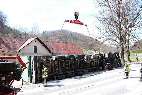 Auf der B11 bei Baukilometer 45,8 stürzte am 8. April 2008 ein vollbeladener ca. 17t Sägespäne-LKW um. Gegen 12:30 Uhr werden die Freiwilligen Feuerwehren Nöstach und Neuhaus (Bezirk Baden) alarmiert. Nachdem die beiden Feuerwehren die Sicherungsarbeiten durchgeführt haben, wurde anschließend das Kranfahrzeug angefordert.