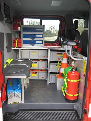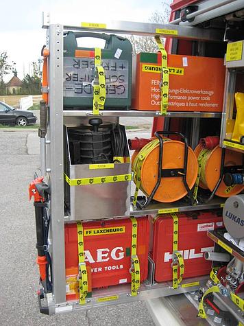 Neben der Normausstattung ist auch noch ein hydraulisches Kombigerät SC55 von der Firma Lukas, ein Rettungszylinder R430 3-stufig, ein elektrisches Kompaktaggregat sowie vier Rangierroller Gojak 6200 eingebaut.