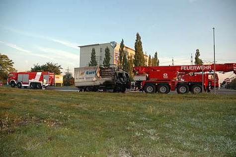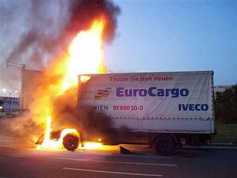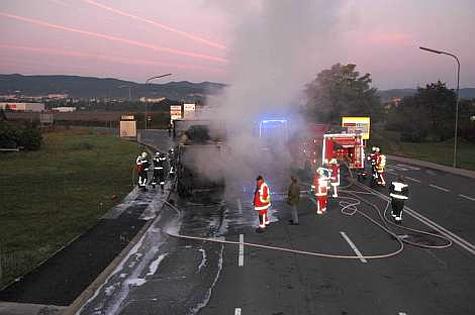 Die Fahrerkabine eines Iveco-LKW stand in den Morgenstunden des 29. September 2008 bei der Kreuzung B17 mit der Brown-Boveri-Straße im Vollbrand.