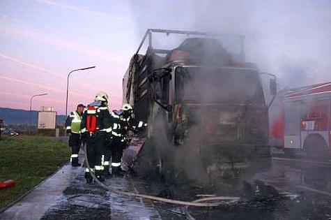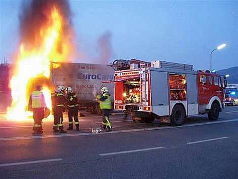 Der Lenker des LKW konnte sich in letzter Sekunde aus der brennenden Fahrerkabine retten und über den Notruf die Feuerwehr verständigen.