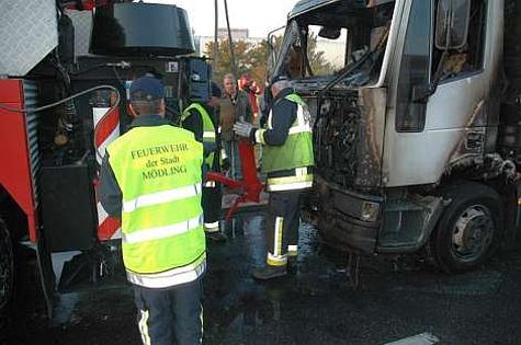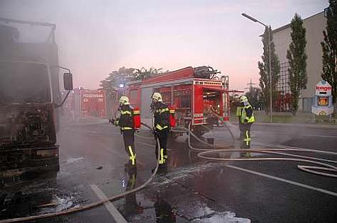 Die Bezirksalarmzentrale Mödling alarmierte um 06.29 Uhr die Freiwillige Feuerwehr Wr. Neudorf zum LKW-Brand. Schon von weitem waren die Flammen sichtbar. Unverzüglich rüstete sich ein Atemschutztrupp aus um mit der Brandbekämpfung beginnen zu können.