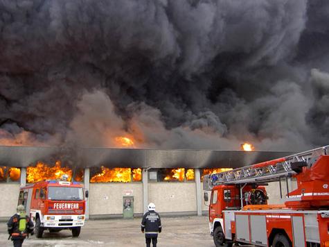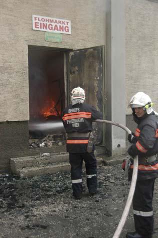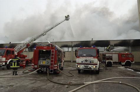 Betroffen war eine ca. 6000 Quadratmeter große Lagerhalle, die für einen Flohmarkt genutzt wird.