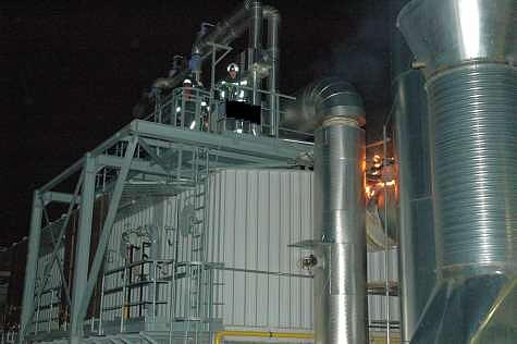 Über die Drehleiter Wiener Neudorf wurde währenddessen ein zweites C-Rohr in Stellung gebracht um den Brand unter Kontrolle bringen zu können. Der Atemschutztrupp am Industriegebäude stellte fest, dass nicht die Abgasverbrennungsanlage brannte, sondern ein Holzbaugerüst welches für Revisionsarbeiten aufgestellt wurde.
