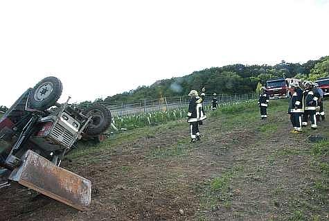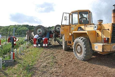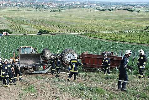 In der Riede Satzing geriet ein Weinbauer mit seinem Traktor samt Anhänger in Schräglage und kippt anschließend um. Dabei wurde der Lenker des Traktors zwischen Erdreich und Dach eingeklemmt.